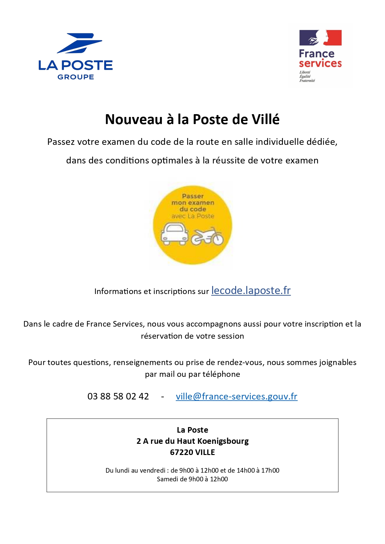 22 Jan Passez l’examen du code à la Poste de Villé Publié le 12:37h dans En bref, Vie communale par audrey