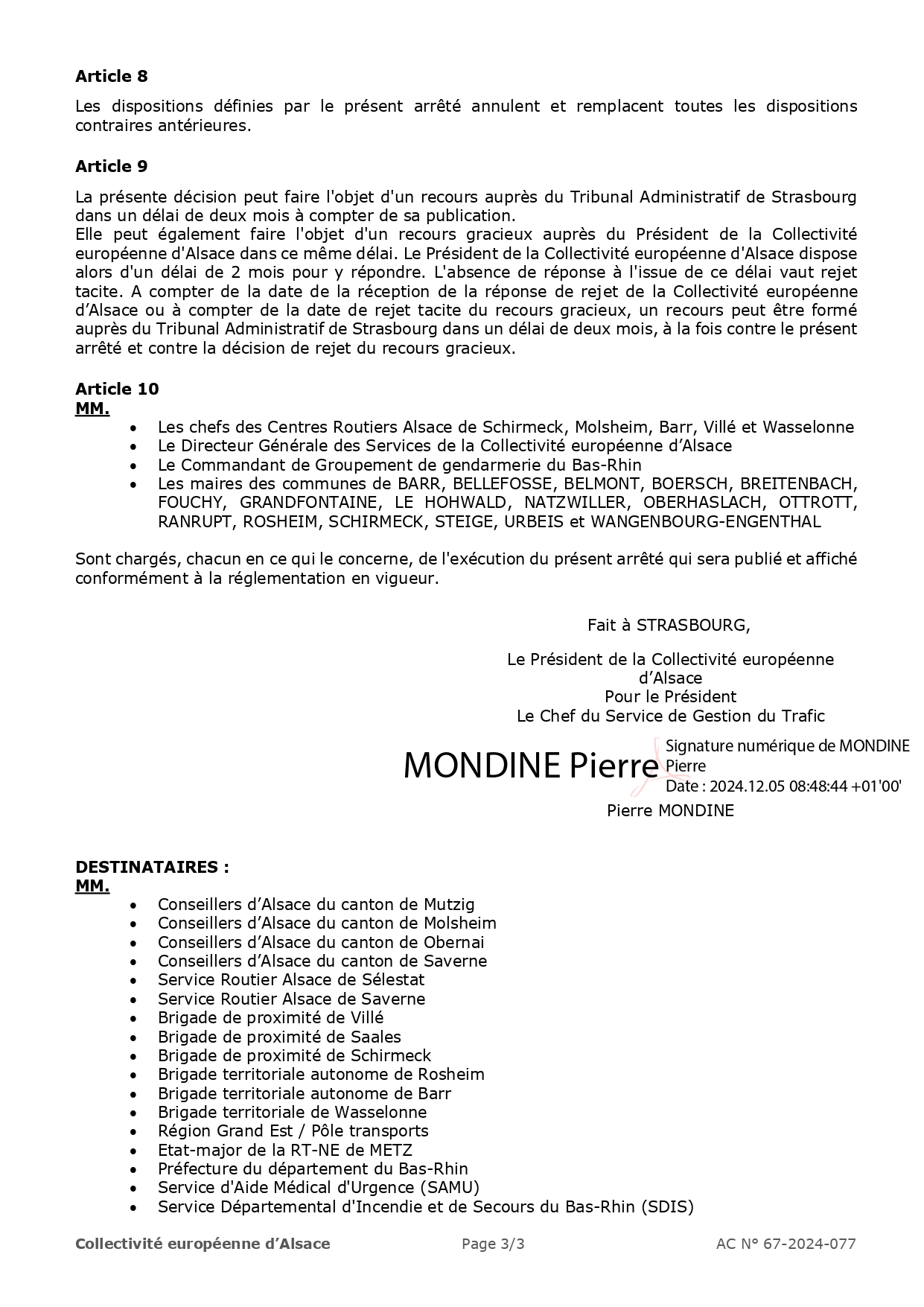 Arrêtés municipaux