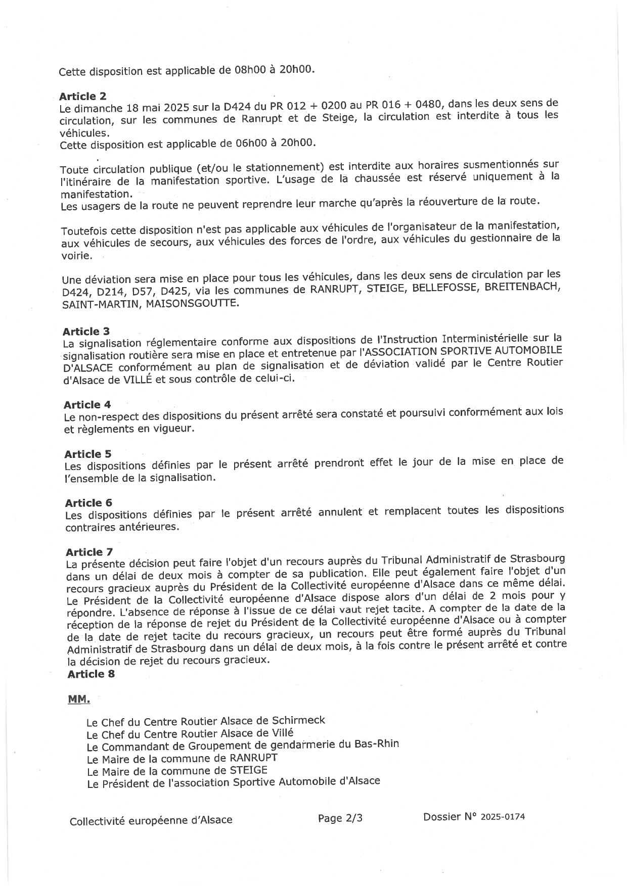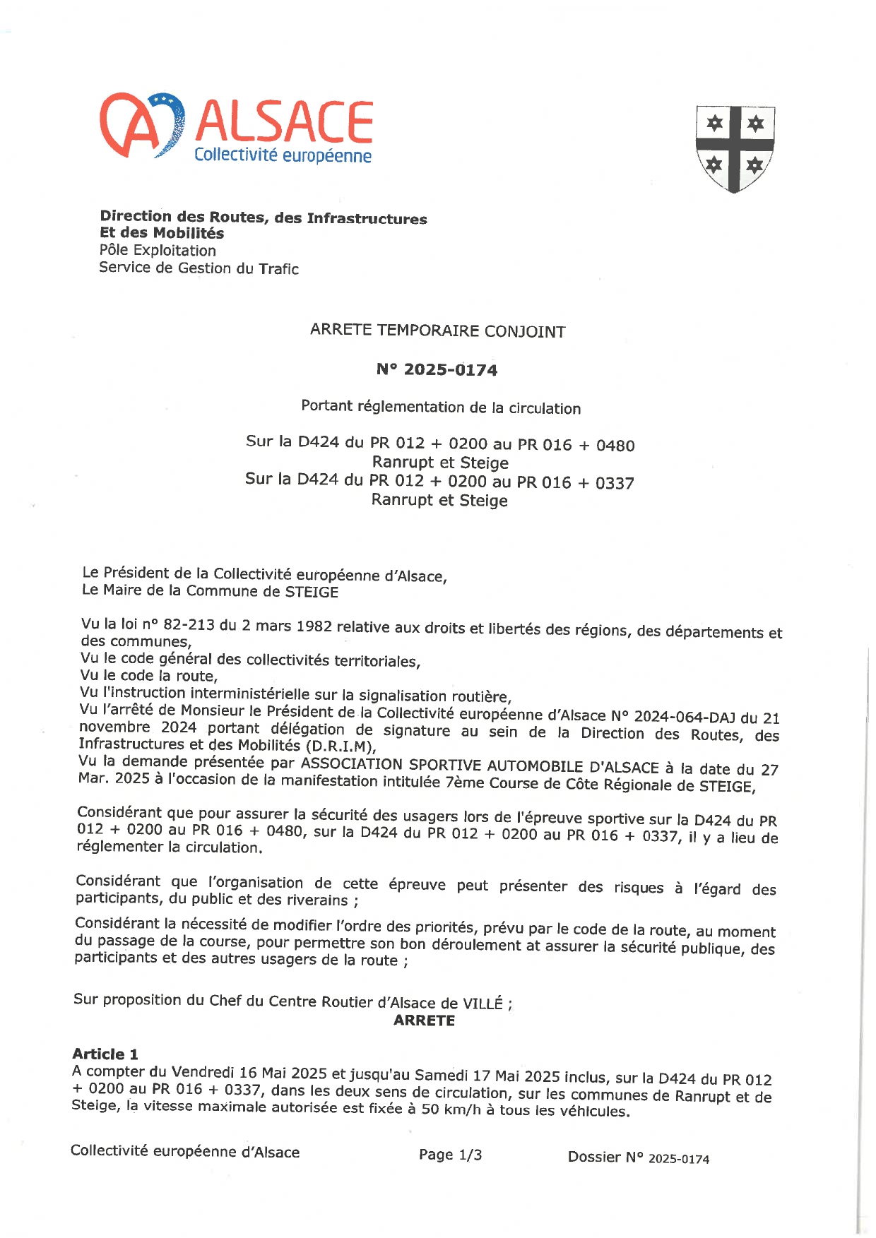 Déviation 7ème course de Côte Régionale de STEIGE
