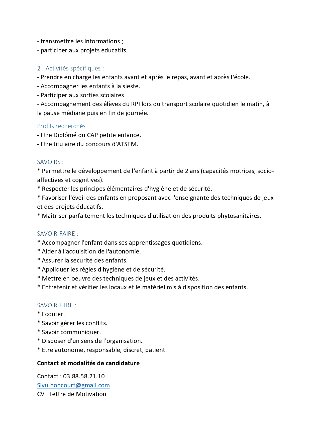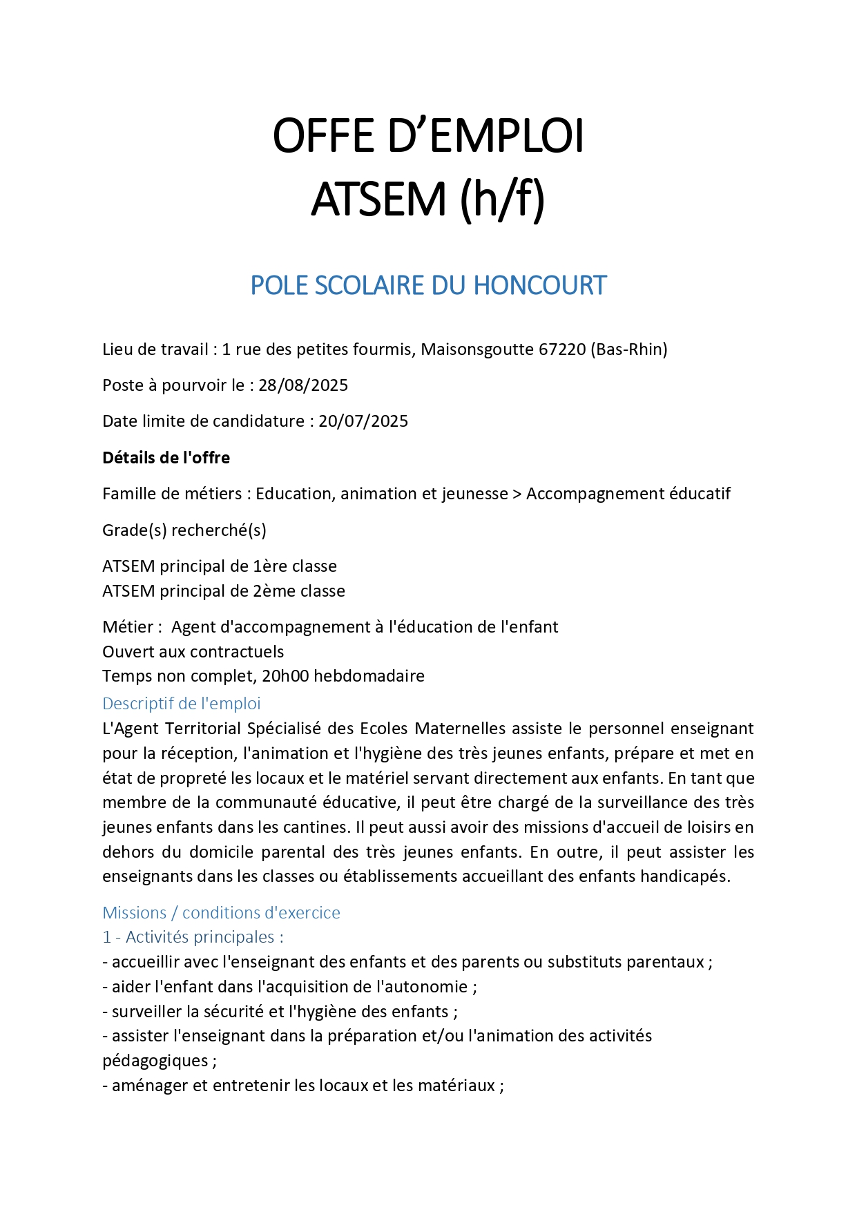 Offre d’emploi ATSEM