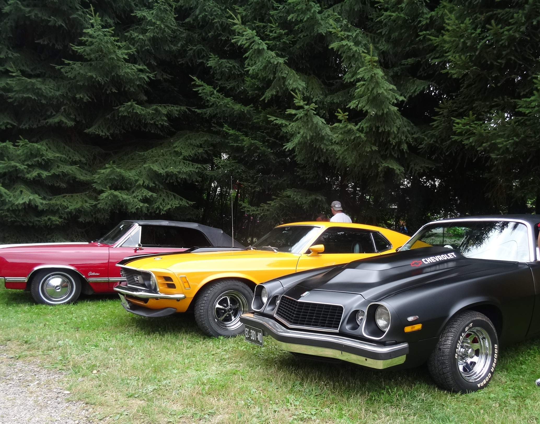 Parade qui s’ébranle à grand renfort de coups de klaxon et de pétarades parmi les odeurs de carburant qui flottent autour des aires de départ. Car il faut régler la circulation, les engins démarrent de plusieurs directions mais tout en douceur. Jean-Jacques Wehrung, en grand connaisseur, commente les caractéristiques des modèles. Opel Manta, R11 Turbo, Citroën Visa et autres youngtimers ,Traction des années 50, Dauphine, Dyna Panhard, 403, Simca Ariane, Alpine, Porsche, une surprenante Marlin, voiture britannique qui compte moins de 500 exemplaires dans le monde, 4 CV, 2 roues dont les pilotes portent casque et costume d’époque, Oldmobile, Chevrolet Camaro, Monza ou Corvette datant de 1975, 202 cabriolet rutilante…