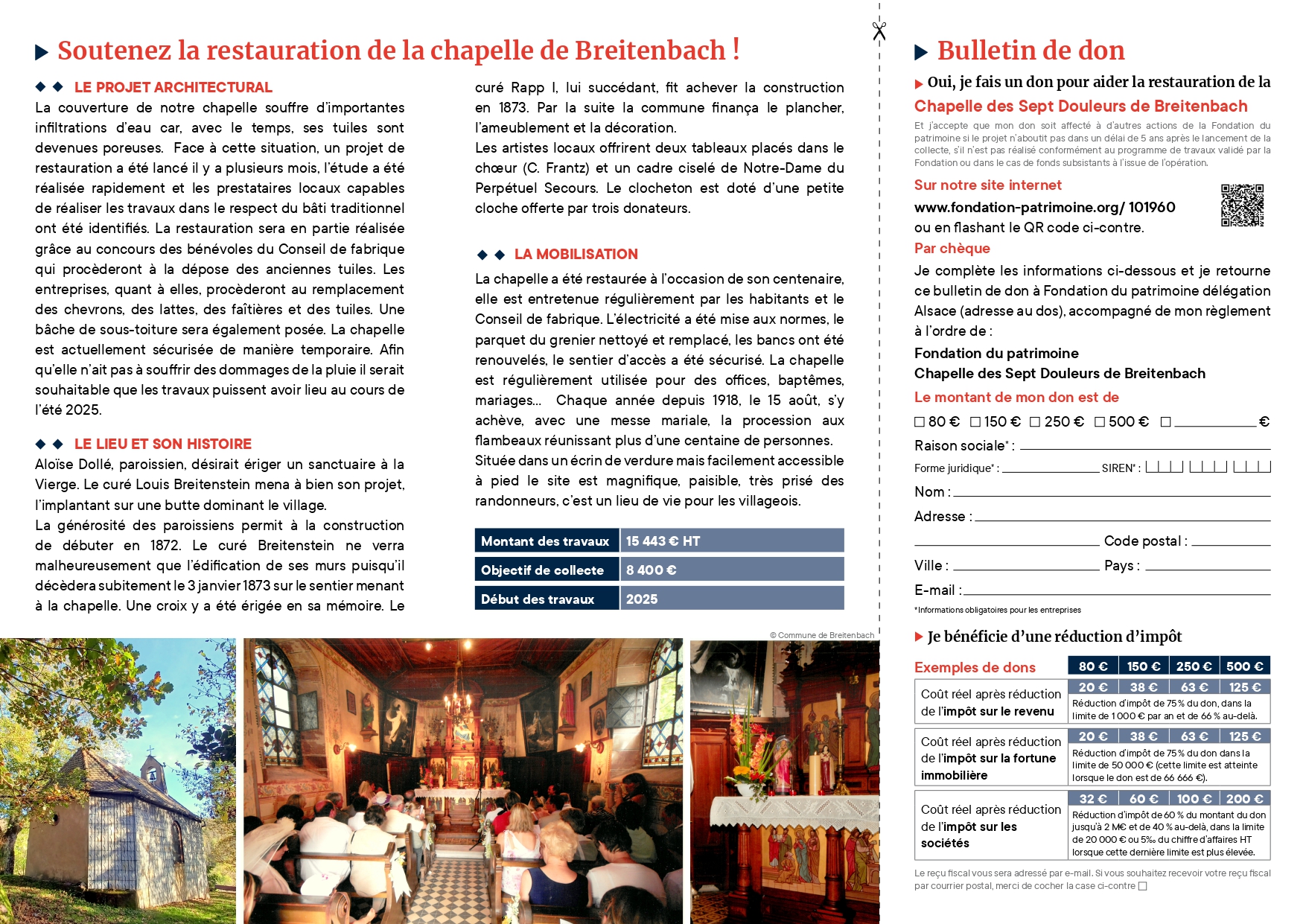 La campagne de collecte des dons pour la restauration de la chapelle de Breitenbach est officiellement ouverte en partenariat avec la fondation du patrimoine.