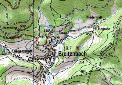 Le village en lui-même s’étire sur plusieurs kilomètres, le long des ruisseaux descendus de la montagne. Les deux noyaux originels aux noms fleurant bon l’Histoire, Kriegersmatt et Schiessgass d’un côté, Suppendorf et Baerenloch de l’autre, se sont rejoints en un noyau central ou se sont implantées église, mairie et école.