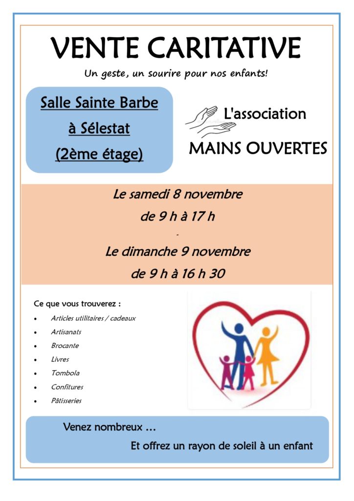 03 Nov Vente caritative de l’Association Mains Ouvertes Publié le 14:11h dans Agenda, Agenda de la vallée par audrey